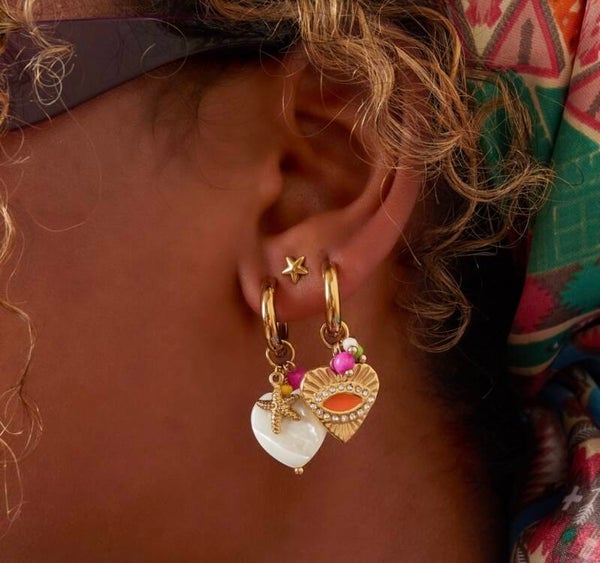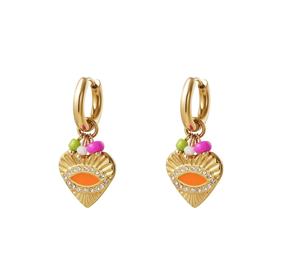 Roestvrij stalen hoepels met bungelende hartjes, instant vrolijkheid in je oren.