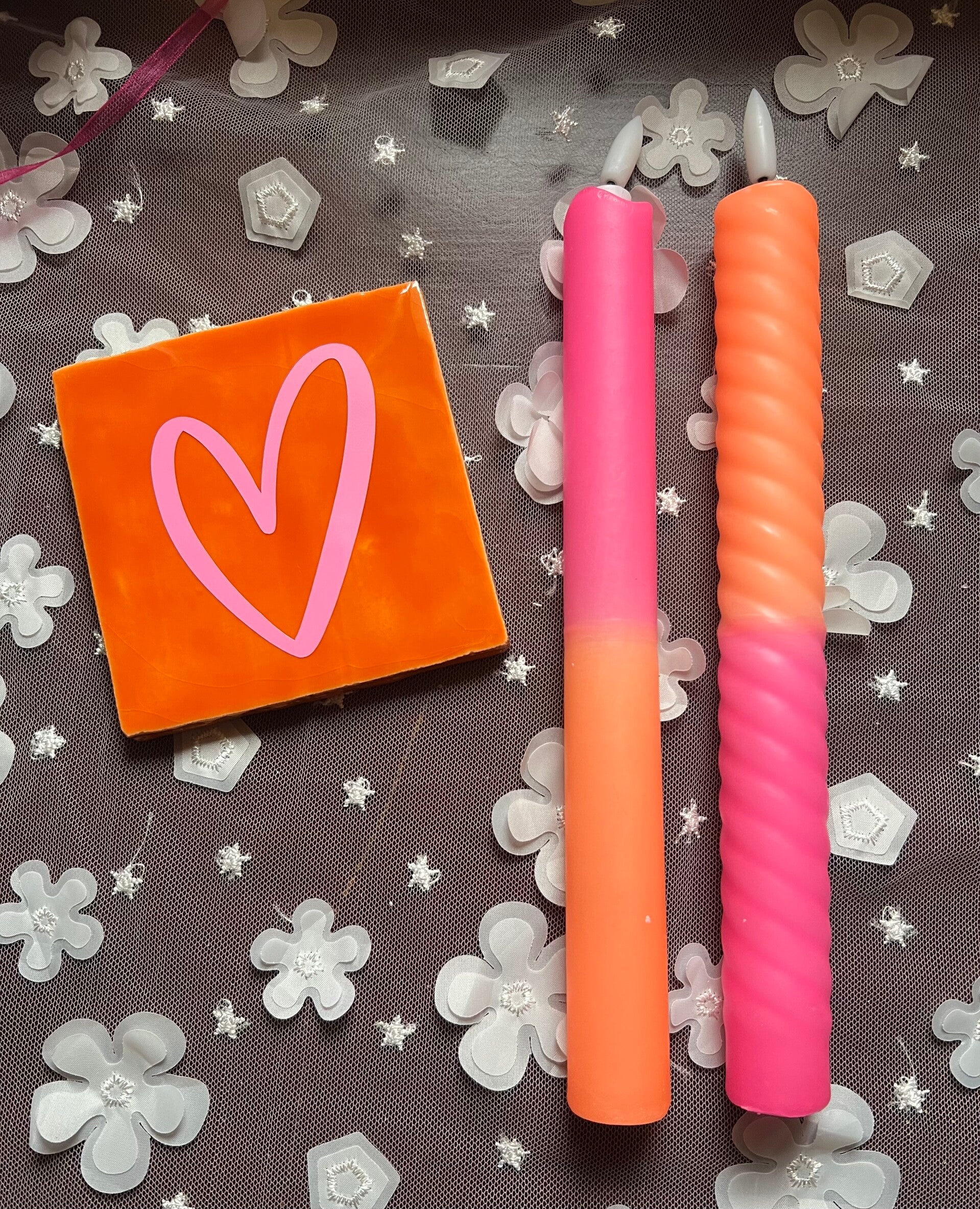 Let op: mocht de kaars niet passen (door het dippen is de kaars wellicht wat dikker geworden) druk dan niet door want dan kan de kaars breken. Haal met een mesje aan de onderkant wat van het bovenste laagje wax af, totdat de kaars perfect past in jouw kandelaar.