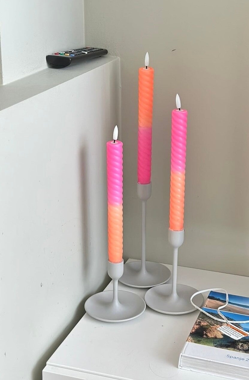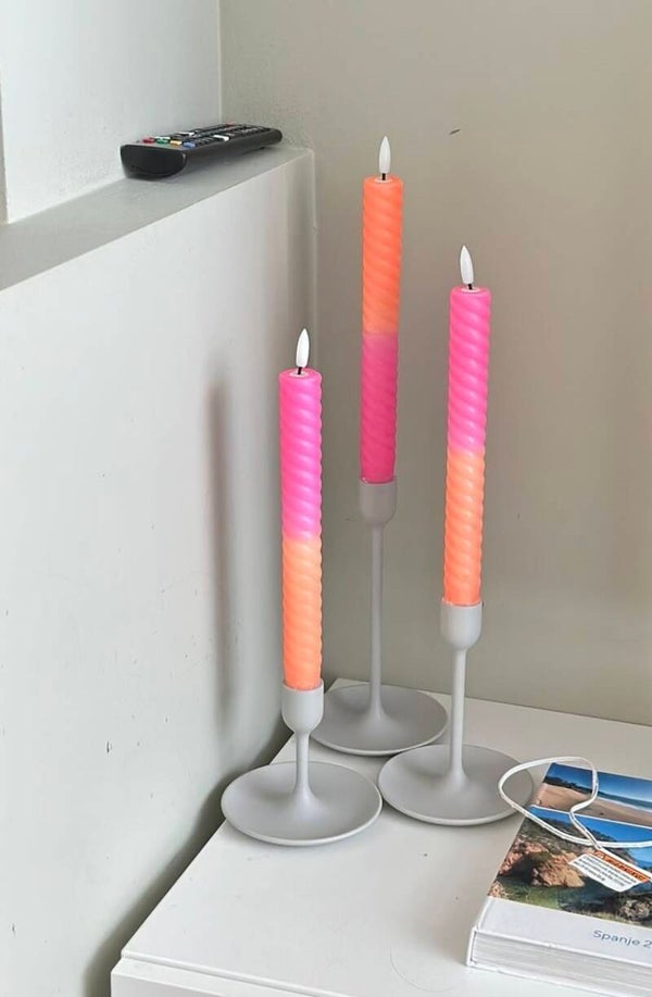 LET OP: gedraaide led kaarsen zijn niet meer verkrijgbaar en de kaarsen zijn alleen nog in gladde uitvoering verkrijgbaar! De LED kaars wijkt dus af van de foto!