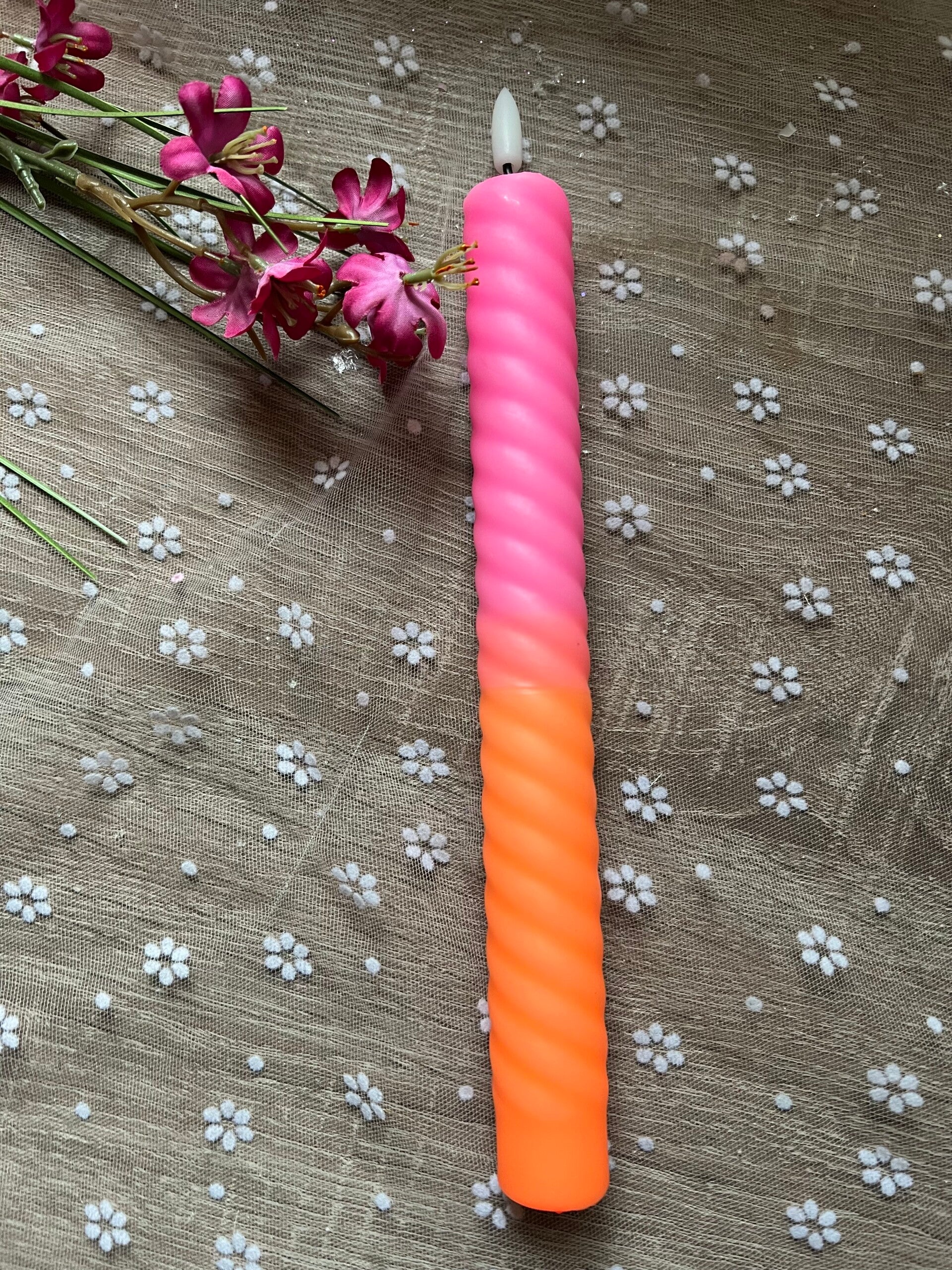 Deze LED kaarsen worden door ons met de handgedipt in leuke kleuren. Doordat het vlammetje wakkert ziet de kaars er ook echt uit.