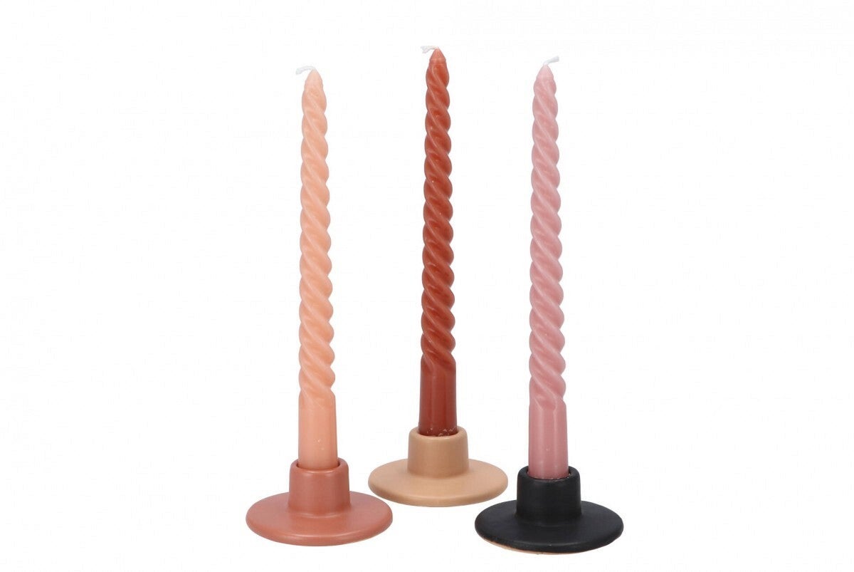 Eenvoudige doch stijlvolle kandelaar in 2 kleuren: peach en lichtbeige. De kandelaar is geschikt voor dinerkaarsen. Door de kleurstelling van deze kandelaars passen er leuke gekleurde kaarsen in. Past de kaars niet, schraap dan een stukje van de or kant van de kaars af.